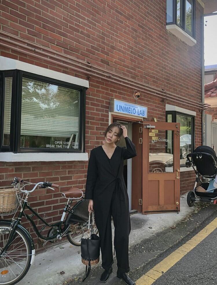 ワンピース オールインワン シンプル モード カジュアル リボン Vネック ロールアップ アンクル丈 パンツ ワイド ストレート 大きめ ポケットあり おしゃれ お洒落 薄手 秋 春 ルームウエア すっきり 襟なし S M L XL ブラック 黒 かっこいい キレイ 楽チン 大人 学生 レディース 長袖 ウエストマーク おでかけ オフィス 通勤 スリム タイト 細身 スマート 大人女子 こなれ感 ラフ 個性的 無地 普段使い 体型カバー トレンド 脚長 ママ 休日 女子会 主役級 ショッピング モノトーン