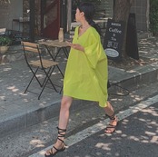 Vネックで女性らしい印象を与え、ワイドなシルエットで自然なこなれ感も叶えてくれる一枚です。