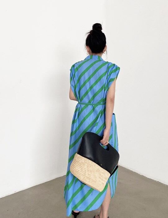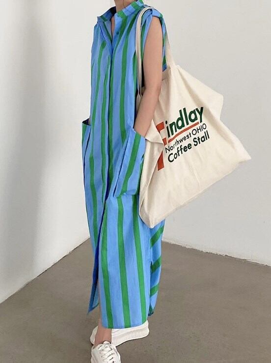 ワンピース シャツワンピース ロングワンピース ロング丈 袖なし ノースリーブ クルーネック 前開き ビックポケット かわいい 大人可愛い きれいめ シンプル カジュアル 大人 上品 おしゃれ かっこいい 大人女子 こなれ感 ラフ ボーイッシュ メンズライク レトロ モード系 個性的 主役級 存在感 ストライプ 春 秋 10代 20代 30代 レディース 女性用 デート お出かけ 女子会 お泊まり 休日 リゾート 旅行 ホテル ショッピング レストラン 着回し 普段使い ワンサイズ ゆったり 楽ちん