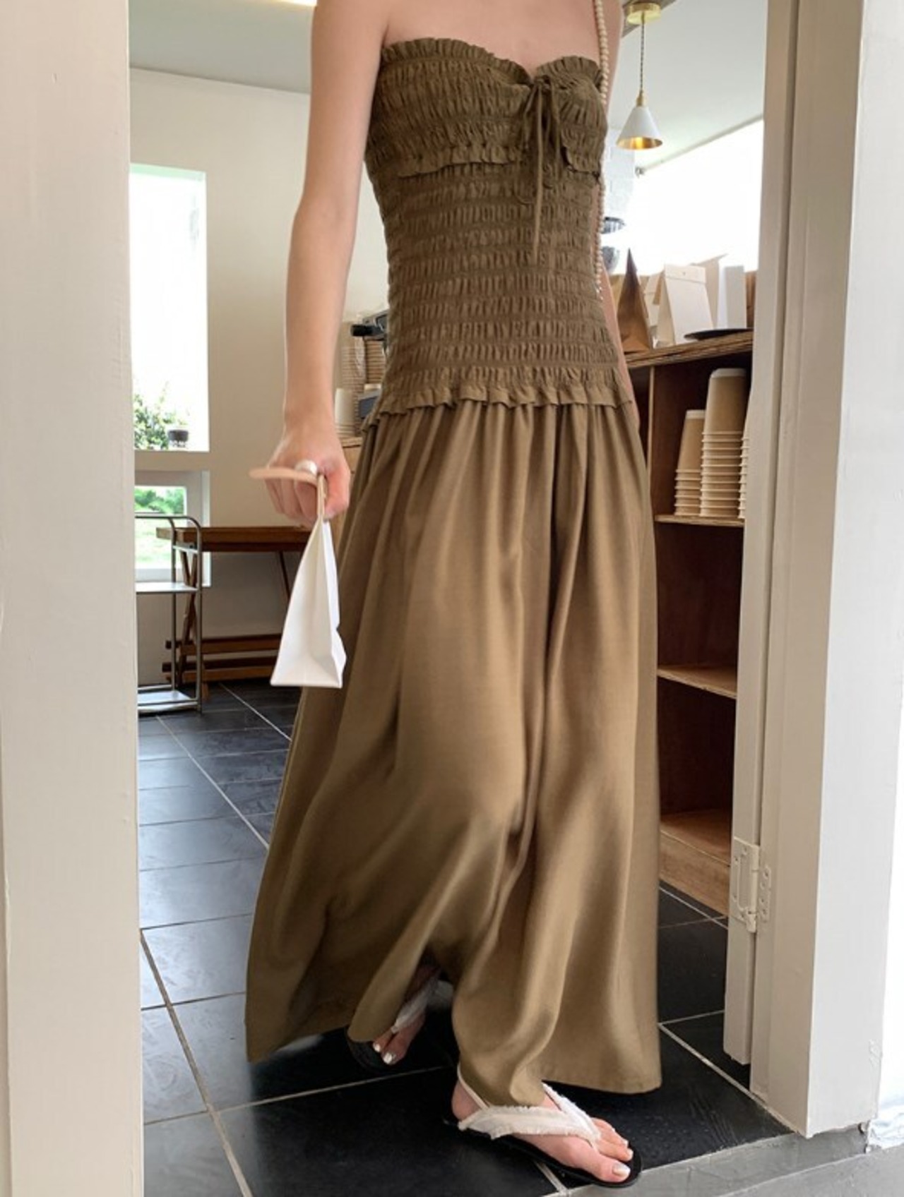 ワンピース ロングワンピース チューブトップワンピース 袖なし 胸元 タイト 細身 かわいい 大人可愛い きれいめ シンプル カジュアル 大人 上品 おしゃれ かっこいい 大人女子 こなれ感 ラフ レトロ モード系 セクシー キュート 個性的 主役級 存在感 無地 春 夏 10代 20代 レディース 女性用 デート お出かけ 女子会 お泊まり 休日 リゾート 旅行 海 プール ホテル ショッピング レストラン 着回し 普段使い 重ね着 ファッション コーデ スタイル S M スレンダー モテ
