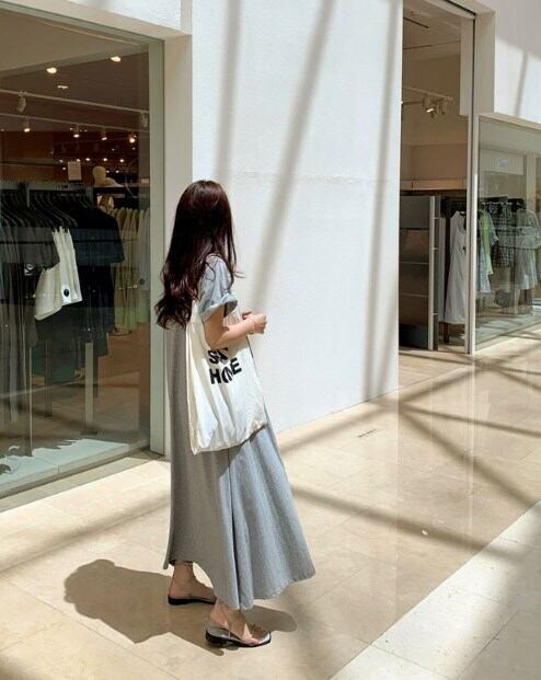 ロング丈のワンピースは、女性らしいきれいなラインが素敵です。