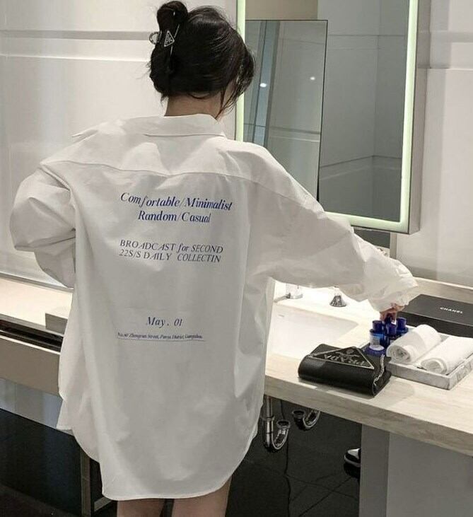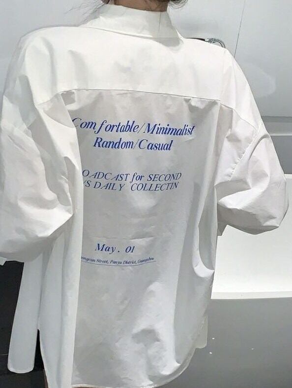 トップス シャツ 白シャツ ロング ロング丈 ミディアム丈 袖あり 長袖 萌袖 襟付き ワイド 大人可愛い きれいめ シンプル カジュアル 大人 おしゃれ お洒落 かっこいい 大人可愛い 大人女子 こなれ感 ラフ メンズライク ボーイッシュ スポーティー ルーズ クール プリント 夏 10代 20代 レディース 女性用 女の子 デート お出かけ 女子会 休日 イベント 着回し 普段使い 重ね着 ファッション コーデ 楽ちん 体系カバー フリーサイズ ゆったり 白 ホワイト 大人カラー モノトーン