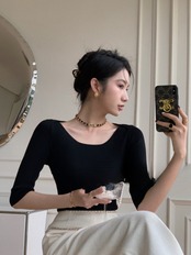 トップス ニットソー プルオーバー 袖付き 5分袖 ラウンドネック バックシャン 肌見せ タイトル かわいい 大人可愛い きれいめ シンプル カジュアル 大人 上品 おしゃれ かっこいい 大人女子 こなれ感 クール シック 清楚 モード系 個性的 主役級 存在感 無地 春 夏 10代 20代 30代 レディース 女性用 ママ 学生 通学 デート お出かけ 女子会 お泊まり 休日 旅行 ホテル ショッピング レストラン 着回し 普段使い 重ね着 ファッション スタイル スレンダー モテ コーデ ワンサイズ