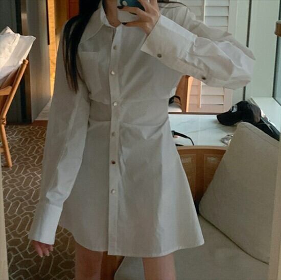 ミニ丈で軽やかな印象を与えるワンピースシャツドレスです。