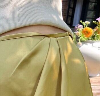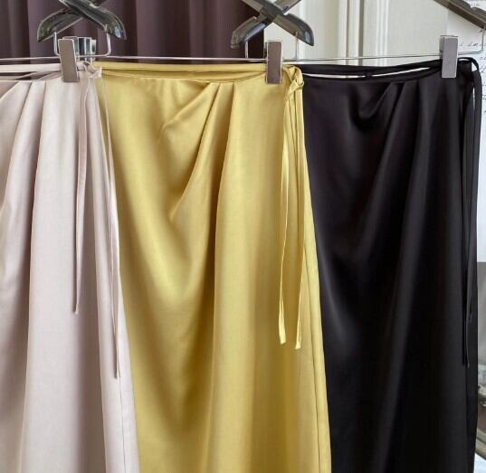 フレンチでエレガントなロングスカートが登場しました。上品なサテン素材の質感とプリーツによるドレープが美しく、ハイウエストのデザインでスタイルも一層引き立ちます。スリムに見せる効果もあるので、体型カバーにもうってつけです。