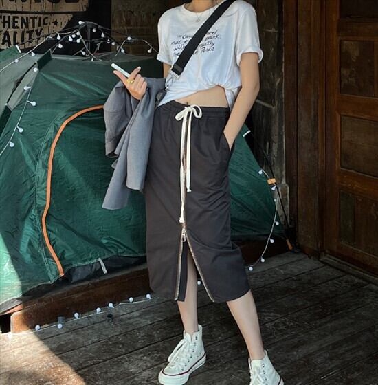 今年のトレンドであるロング丈のスカートが、ジッパーデザインで個性的に生まれ変わりました。すっきりとしたシルエットで、大人可愛い雰囲気を演出してくれます。