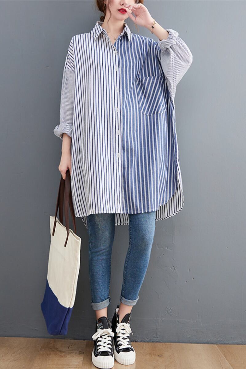 個性的 トップス シャツ ロング ロング丈 袖あり 長袖 ボリューム袖 ワイド コットン 大人可愛い カジュアル 大人 おしゃれ かっこいい 大人可愛い 大人女子 こなれ感 ラフ メンズライク ボーイッシュ ルーズ 個性的 ストライプ シマ 秋 20代 30代 レディース 女性用 ママ デート お出かけ 公園デビュー 女子会 休日 アウトドア イベント 高原 ガーデン 着回し 普段使い 重ね着 ファッション コーデ スタイル 体系カバー L XL 2XL 3XL ビッグサイズ ゆったり 白 ホワイト
