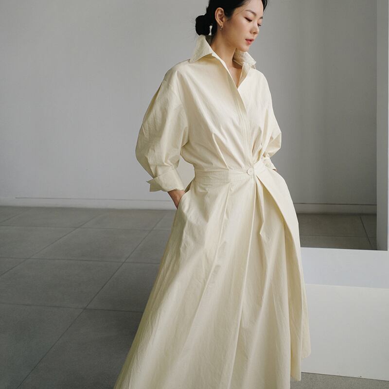 ワンピース ウエストシェイプワンピース Aライン 膝下 ロング ロング丈 袖あり 7分袖 七分袖 襟付き 切り替えデザイン 前開き ボタンあり きれいめ スリム シンプル カジュアル ポケット 大人 上品 おしゃれ お洒落 かっこいい 大人女子 クール 無地 春 秋 冬 20代 30代 40代 レディース 女性用 ビジネス OL 通勤 デート お出かけ 休日 ホテル ガーデン レストラン 着回し 普段使い 重ね着 ファッション コーデ スタイル サイズ S M L XL 色展開 黒 ブラック ベージュ