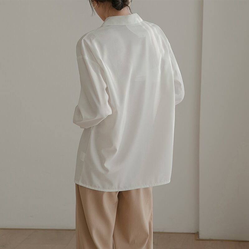 トップス シャツ 白シャツ 袖あり 長袖 襟付き ストレート 前開き ポリエステル かわいい 大人可愛い きれいめ シンプル 大人 上品 おしゃれ お洒落 大人女子 ラブリー キュート ガーリー エレガント 抜け感 無地 春 10代 20代 30代 レディース 女性用 女の子 オフィス ビジネス OL 通勤 学生 通学 デート お出かけ 女子会 休日 高原 ホテル レストラン 着回し 普段使い 重ね着 コーデ モテ 定番 S M L XL 白 ホワイト