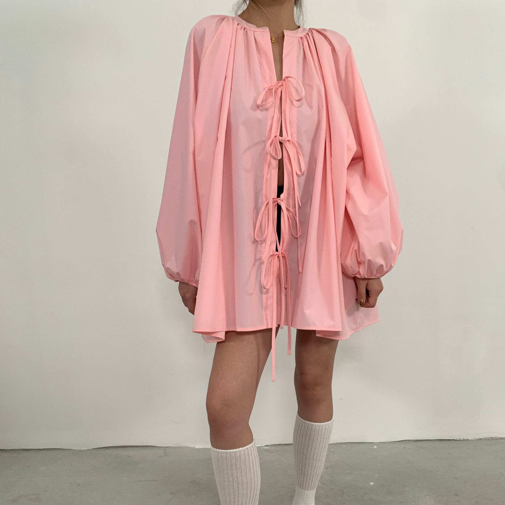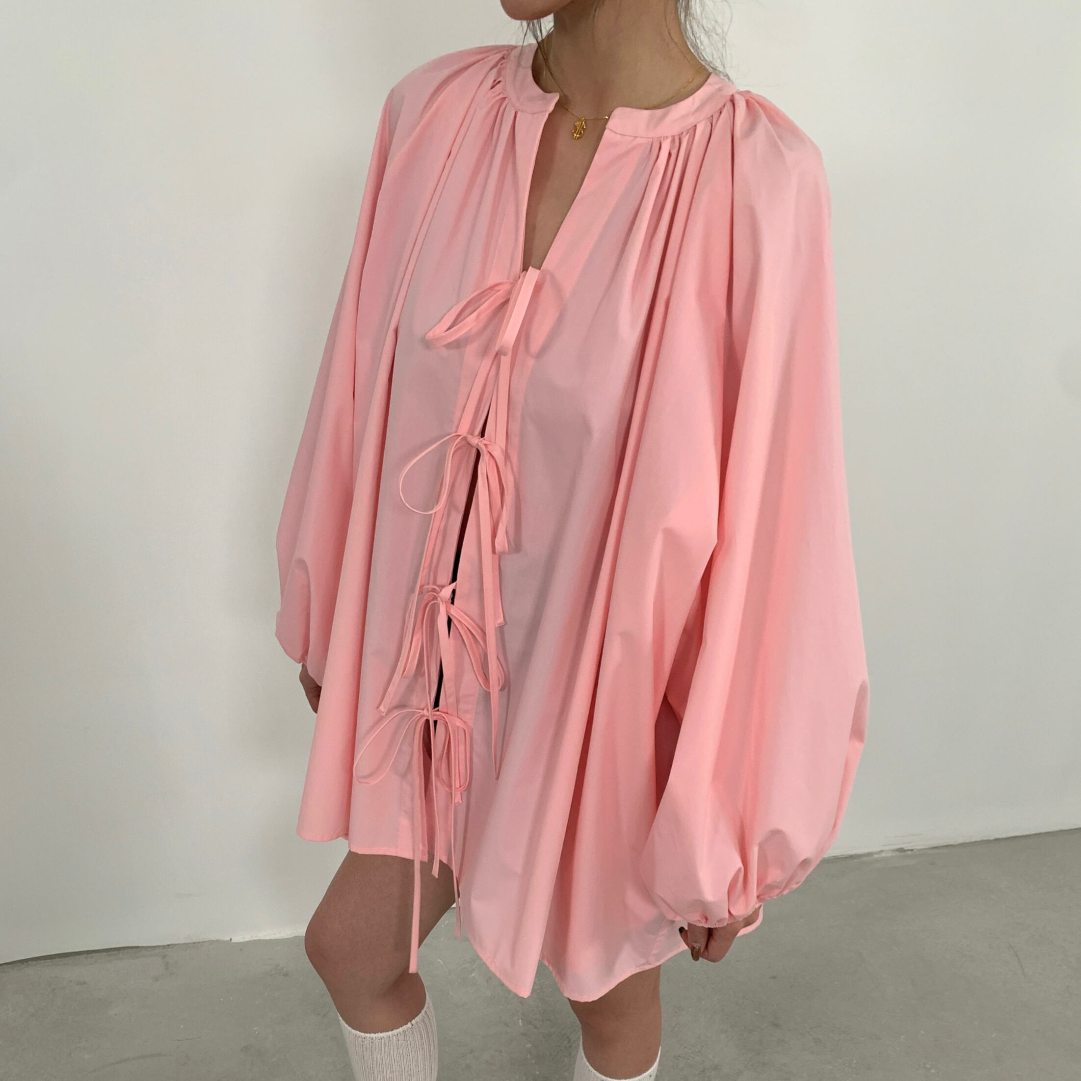 個性的 ワンピース コートスタイル 膝上 袖あり 長袖 萌袖 ラウンドネック 襟なし ワイド リボン バックリボン バックシャン 2way 薄手 かわいい 大人可愛い シンプル おしゃれ お洒落 大人可愛い ラフ 無地 春 夏 秋 10代 20代 30代 レディース 女性用 ママ マタニティ デート お出かけ 公園デビュー 女子会 お泊まり イベント リゾート 着回し 普段使い 重ね着 ファッション コーデ スタイル 楽ちん 体系カバー サイズ フリーサイズ 大きい 大きめ ゆったり ゆる 色展開 ピンク