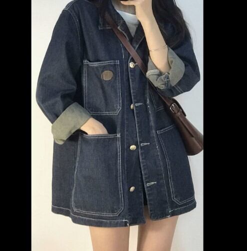 アウター デニム ジャケット レディース 襟あり ポロ襟 シャツ袖 無地 大きいサイズ レギュラー丈 長袖 前開き シングルブレスト スクエアカラー レギュラースリーブ かわいい きれいめ 大人可愛い おしゃれ 通学 個性的 ルーズ レトロ ポケット ボタン カジュアル キュートトレンディ デート お出かけ 休日 リゾート 高原 コテージ 旅行 アウトドア ドライブ スタイル 主役級 ゆったり 体型カバー モテ 新作 インスタ映え サイズ S M L XL 2XL 3XL 4XL 5XL展開 ネイビー