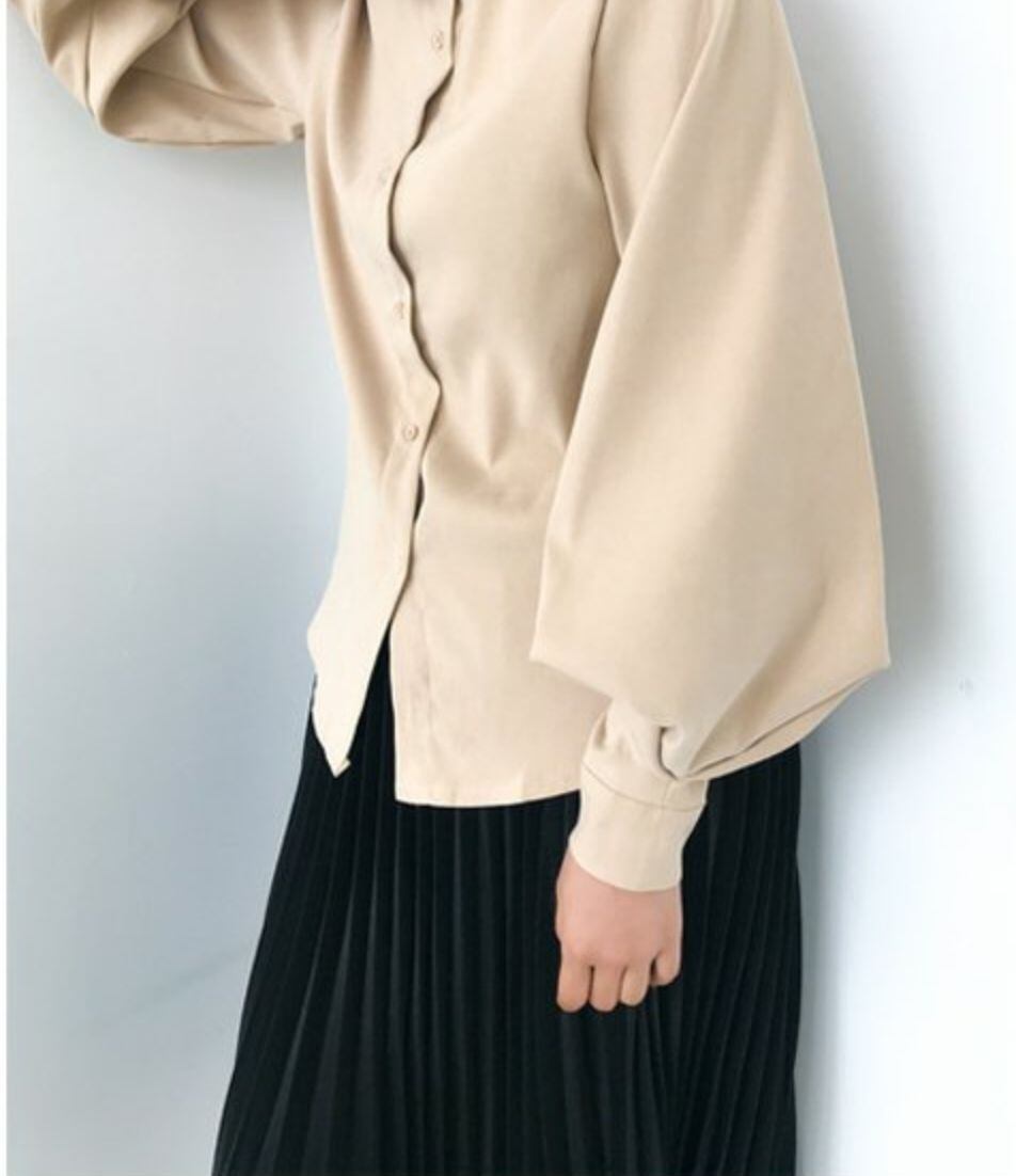 カジュアルからきれいめコーデまで使える上品なボリュームスリーブシャツ。