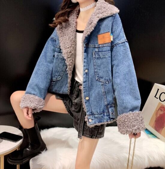 アウター ラムウール コート トップス デニム ジャケット レディース 襟あり ポロ襟 ショート丈 長袖 前開き シングルブレスト 綿パッド レギュラースリーブ 厚手 かわいい 大人可愛い おしゃれ 通学 個性的 ルーズ レトロ ポケット ジッパー 無地 バイカラー カジュアル キュートトレンディ デート お出かけ 休日 リゾート 高原 コテージ 旅行 アウトドア ドライブ ファッション スタイル 主役級 ゆったり 体型カバー モテ 新作 インスタ映え サイズ S M L XL 展開 ブルー ブラック