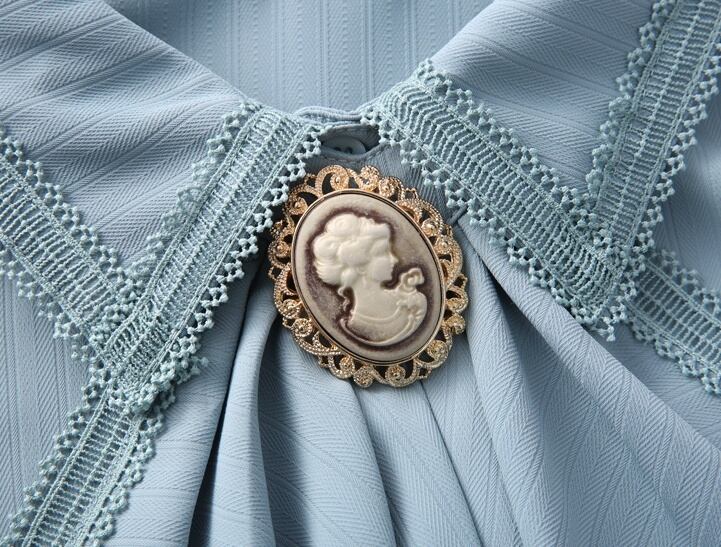 お人形の様なフリルカラーで顔周りを華やかにしてくれます。ふちレースやカフスボタンなど細部までこだわりのディテールに。