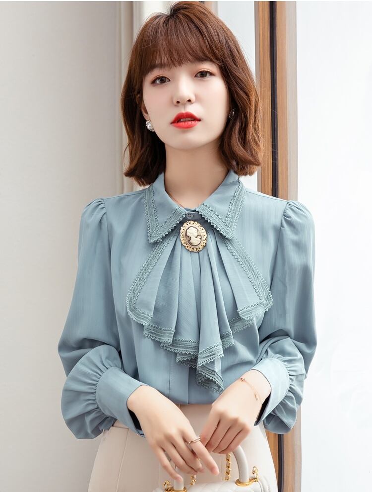 トップス シャツ ブラウス シフォンシャツ レギュラー丈 袖あり 長袖 カフスボタン 襟付き ブローチ ふちレース フリル リボン 前開き 薄手 大人可愛い きれいめ シンプル カジュアル 大人 上品 お洒落 レトロ 大人女子 こなれ感 ガーリー エレガント 主役級 フォーマル 抜け感 無地 春 秋 冬 20代 30代 40代 ママ 通勤 学生 通学 デート お出かけ 女子会 休日 旅行 着回し 普段使い 重ね着 体系カバー 定番 トレンド 流行 インスタ映え S M L XL 2XL ブルー アイボリー