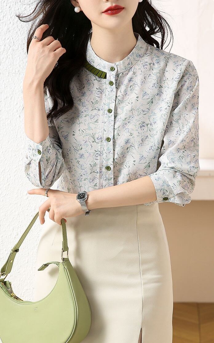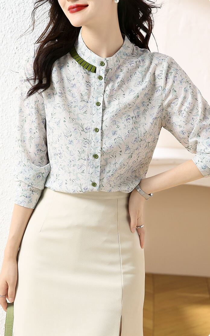 トップス シャツ ブラウス シフォンブラウス レギュラー丈 袖あり 五分袖 バンドカラー アシンメトリー スリム 細身 前開き タックフリル 薄手 大人可愛い きれいめ シンプル カジュアル 大人 上品 お洒落 レトロ 大人女子 こなれ感 ガーリー 主役級 抜け感 花柄 フラワー 春 夏 秋 20代 30代 40代 ママ 通勤 学生 通学 デート お出かけ 女子会 休日 旅行 着回し 普段使い 重ね着 韓国系 スタイル 定番 トレンド 流行 インスタ映え S M L XL 2XL