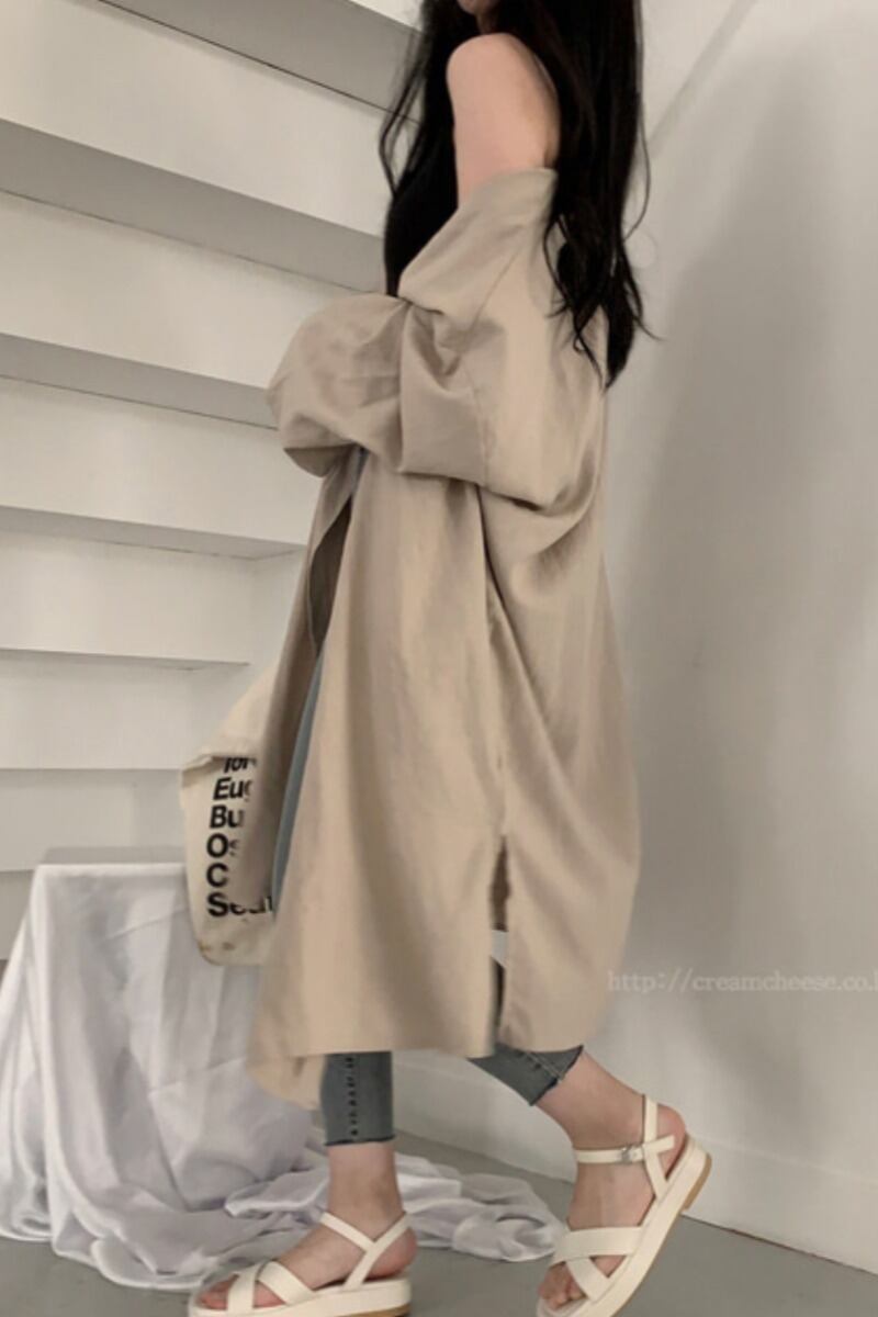 アウター ジャケット ロング丈 上着 袖付き 長袖 襟なし 前開き サイドスリット 薄手 かわいい 大人可愛い きれいめ シンプル カジュアル 大人 上品 おしゃれ かっこいい 大人女子 こなれ感 メンズライク ボーイッシュ 個性的 主役級 存在感 無地 春 夏 秋10代 20代 30代 レディース 女性用 ママ マタニティ 学生 通学 デート お出かけ 女子会 お泊まり 休日 旅行 アウトドア ホテル レストラン ショッピング 着回し 普段使い S M L ゆったり オーバーサイズ ファッション