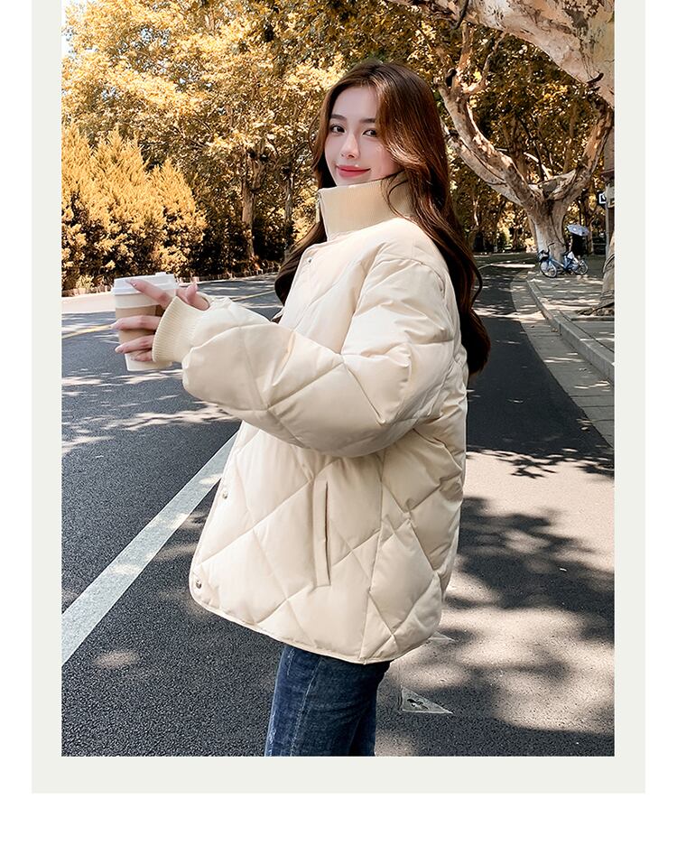 デザインは襟なしのシンプルなもので、誰にでも合わせやすい大人可愛いスタイルに仕上がっています。