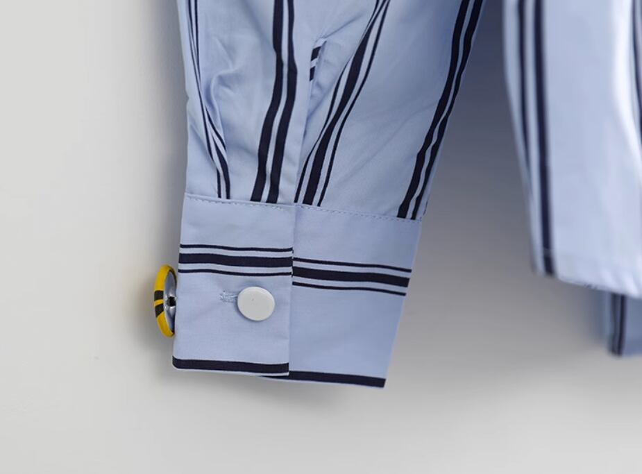 個性的 トップス シャツ ロング丈 襟付き ストレート 切り替えデザイン おしゃれボタン かわいい カジュアル おしゃれ お洒落 かっこいい ガーリー 個性的 クール 水玉 ストライプ 春 秋 10代 20代 30代 レディース デート お出かけ ファッション コーデ サイズ S M L XL ライトブルー