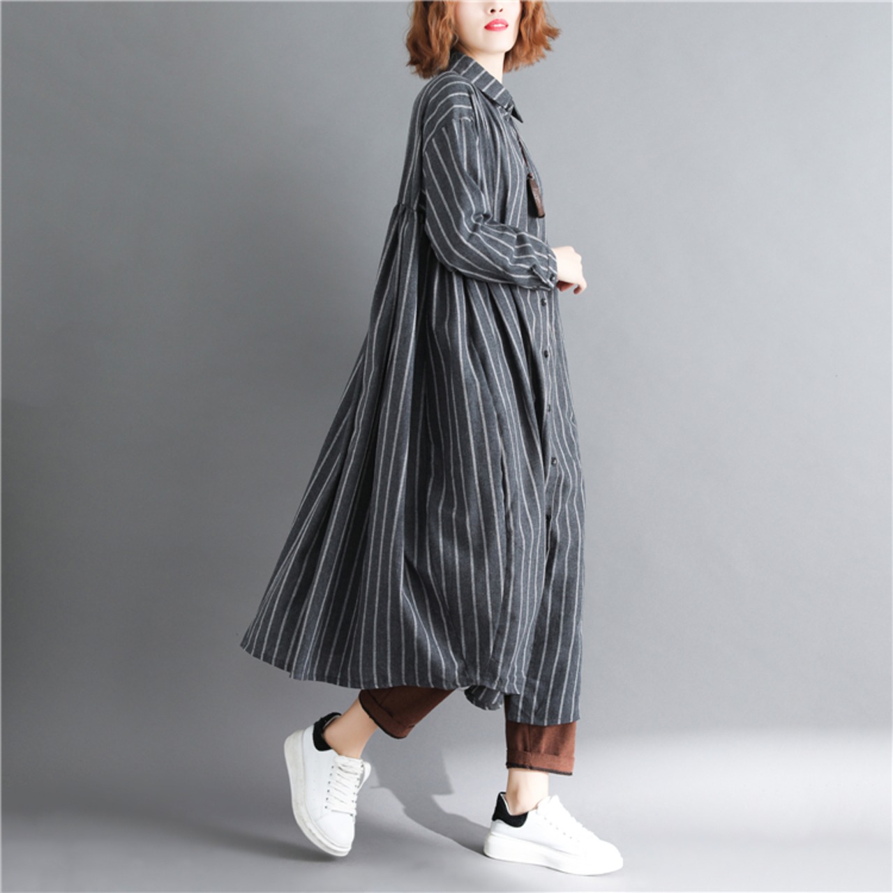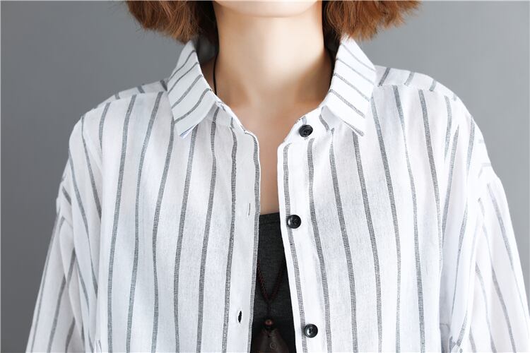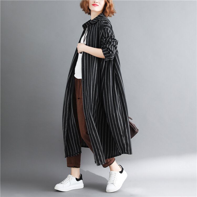 アウター シャツ カーディガン ミディアム丈 袖あり 長袖 襟付き ルーズ ポロカラー 前開き 綿 リネン 薄手 コットン 大人可愛い きれいめ シンプル カジュアル 大人 上品 お洒落 かっこいい レトロ 大人女子 こなれ感 ラフ ラブリー キュート 主役級 存在感 とろみ感 抜け感 ストライプ 秋 20代 30代 40代 50代 60代 レディース デート お出かけ 女子会 お泊まり 休日 普段使い 韓国 オルチャン 楽ちん 体系カバー トレンド 流行 ワンサイズ ホワイト ブラック グレー ネイビー