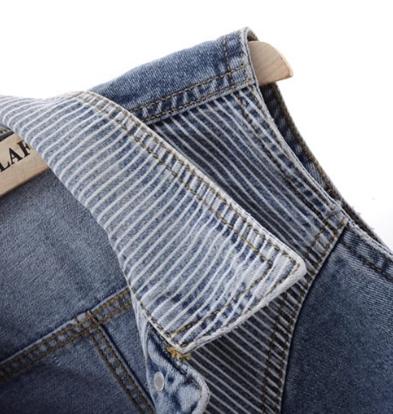 ベスト アウター デニムベスト ジャケット レディース 襟あり ポロ襟 袖なし ストライプ バイカラー 切り替えデザイン 春 秋 ショート丈 チョッキ 前開き シングルブレスト ノースリーブ かわいい きれいめ 大人可愛い おしゃれ 学生 通学 個性的 ルーズ レトロ ポケット ボタン カジュアル キュートトレンディ デート お出かけ 休日 旅行 アウトドア スタイル 主役級 小さいサイズ 大きいサイズ 新作 インスタ映え サイズ S L XL 2XL 3XL 4XL 5XL 色展開 ブルー