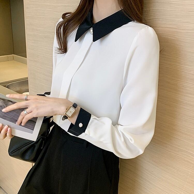 トップス シャツ レギュラー丈 袖あり 長袖 襟付き ポロカラー スリム 細身 ストレート シフォン 前開き 薄手 大人可愛い きれいめ シンプル カジュアル 大人 上品 お洒落 かっこいい レトロ 大人女子 こなれ感 ラフ クール モード系 エレガント モダン 主役級 存在感 とろみ感 抜け感 無地 春 秋 10代 20代 30代 40代 レディース オフィス OL 通勤 デート お出かけ ホテル レストラン ショッピング 着回し 韓国系 オルチャン トレンド 流行 S M L XL 2XL ホワイト