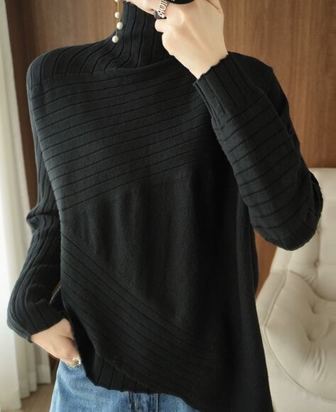 首をすっぽりと覆い隠してくれるタートルネックデザインは冬の強い味方。不規則に入ったラインが個性的でシンプルな中にも遊び心が混ざった一枚。プリーツスカートやデニム、様々なボトムスと相性抜群なので着回し力◎