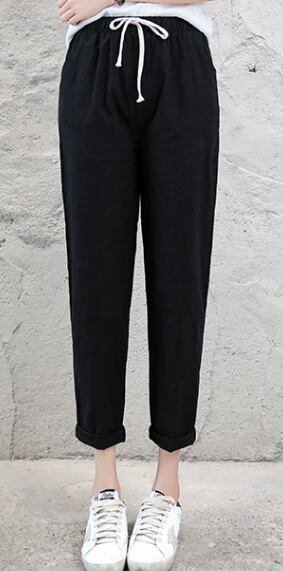 クロップドパンツは、細身のシルエットが美脚効果を高めてくれる一枚。ウエストリボンで調節可能です。春夏のカジュアルスタイルにはもちろん、スポーティーなコーディネートにもぴったり。また、部屋着としても着用可能なため、一枚持っていると何かと重宝することでしょう。白、黒、ベージュの3色展開とS~2XLサイズもあるため、体形や好みに合わせて選ぶことができます。このクロップドパンツで、あなたも脚長効果抜群のスタイルに。是非、お試しくださいませ。