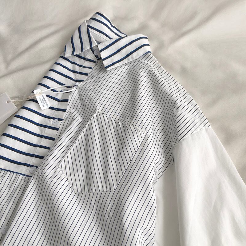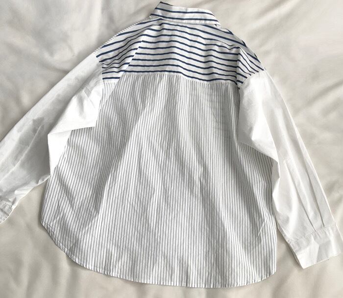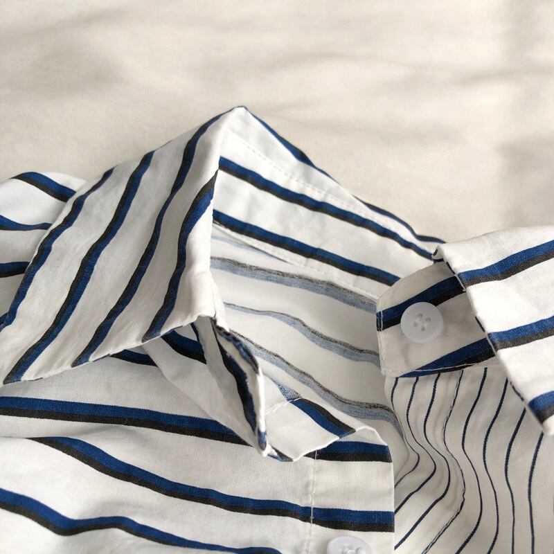 トップス シャツ 白シャツ レギュラー丈 袖あり 長袖 襟付き ルーズ ポロカラー 前開き 綿 薄手 コットン 大人可愛い きれいめ シンプル カジュアル 大人 上品 お洒落 かっこいい レトロ 大人女子 こなれ感 ラフ 個性的 クール モード系 モダン 主役級 存在感 とろみ感 抜け感 ボーダー ストライプ 夏 20代 30代 40代 レディース オフィス OL 通勤 デート お出かけ 女子会 お泊まり 休日 ショッピング 普段使い 韓国 韓国系 オルチャン 楽ちん トレンド 流行 ワンサイズ ホワイト