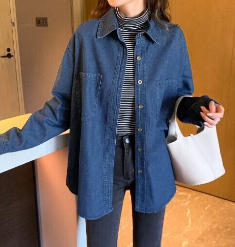 アウター デニム ジャケット デニムシャツ シャツ トップス スリム レイヤード レディース ポロ襟 無地 春 秋 冬 レギュラースリーブ ミディアム丈 前開き シングルブレスト 長袖 かわいい きれいめ ワイルド 大人可愛い おしゃれ 学生 通勤 通学 ママ マタニティ シンプル 個性的 ルーズ レトロ ポケット ボタン カジュアル キュートトレンディ デート お出かけ 休日 旅行 アウトドア スタイル 小さいサイズ 大きいサイズ ゆったり 新作 インスタ映え サイズ S M L XL 色展開 ブルー