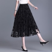スカート ボトムス プリーツスカート ミドル丈 ルーズ Aライン 裾ワイド プリーツ 透け感 シースルー ポリエステル 薄手 大人可愛い きれいめ シンプル カジュアル 大人 上品 お洒落 かっこいい レトロ 大人女子 こなれ感 ラフ セクシー エレガント モダン 主役級 存在感 とろみ感 抜け感 花柄 春 夏 20代 30代 40代 レディース デート お出かけ 女子会 休日 旅行 普段使い 韓国 韓国系 オルチャン 楽ちん トレンド 流行 M L XL 2XL ブラック グレー カーキ アプリコット