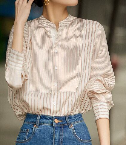 全体に入った二種類の太さのストライプ柄と袖口にだけ入った少し太めのボーダーがオシャレで可愛い長袖シャツ。ボタンを少し開けるとちらっと覗くホワイトの生地がまたいいアクセントになり、コーディネートが締まります。存在感のあるトップスなのでシンプルなボトムスとの相性が抜群です。明るめのブルーを合わせるととても爽やか。