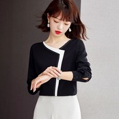 トップス ブラウス シフォンブラウス ミディアム丈 袖あり 長袖 Vネック 襟なし 細身 タック 切り替えデザイン 薄手 大人可愛い きれいめ シンプル カジュアル 大人 上品 お洒落 大人女子 こなれ感 個性的 エレガント 主役級 フォーマル とろみ感 抜け感 無地 春 秋 冬 謝恩会 20代 30代 40代 ママ 通勤 学生 通学 デート お出かけ 女子会 休日 旅行 着回し 普段使い 重ね着 モテ 定番 トレンド 流行 インスタ映え S M L XL 2XL ブラック モノトーン バイカラー
