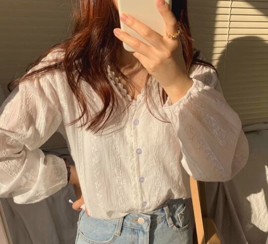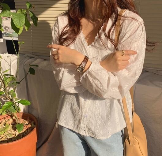 トップス ブラウス 袖あり 長袖 レース レースブラウス Vネック ボリューム袖 パフスリーブ 大人可愛い きれいめ 大人 上品 おしゃれ お洒落 かっこいい レトロ アジアン エスニック エキゾチック 大人可愛い 大人女子 こなれ感 ラフ マニッシュ ラブリー キュート ルーズ 個性的 クール セクシー エレガント モダン 主役級 存在感 フォーマル 抜け感 無地 春 夏 秋 冬 オールシーズン 入学式 入園式 卒業式 卒園式 謝恩会 バレンタイン 10代 20代 30代 40代 レディース 通勤
