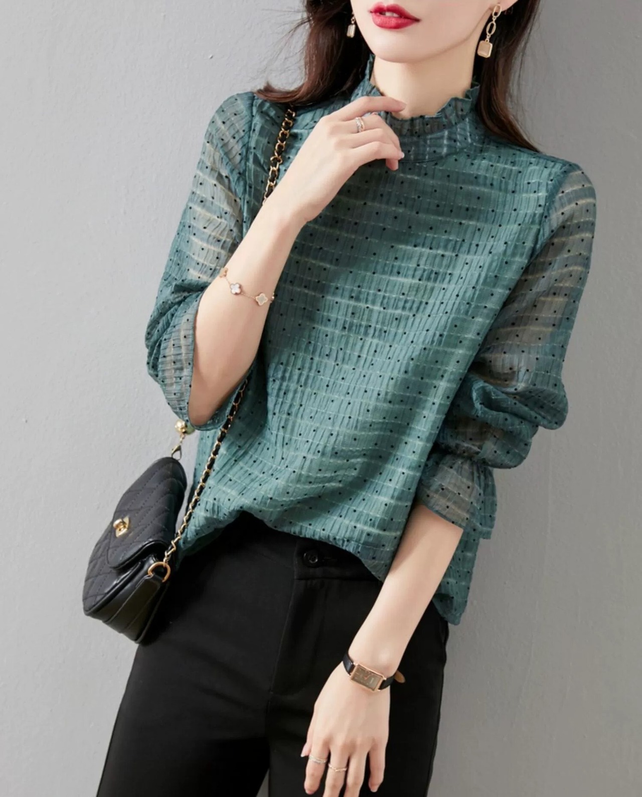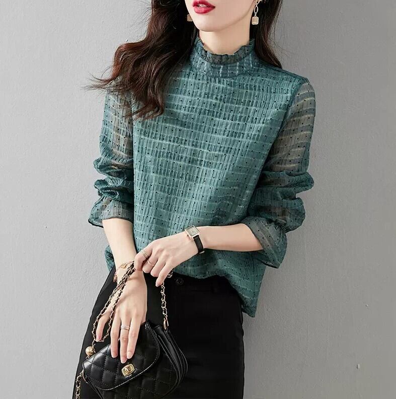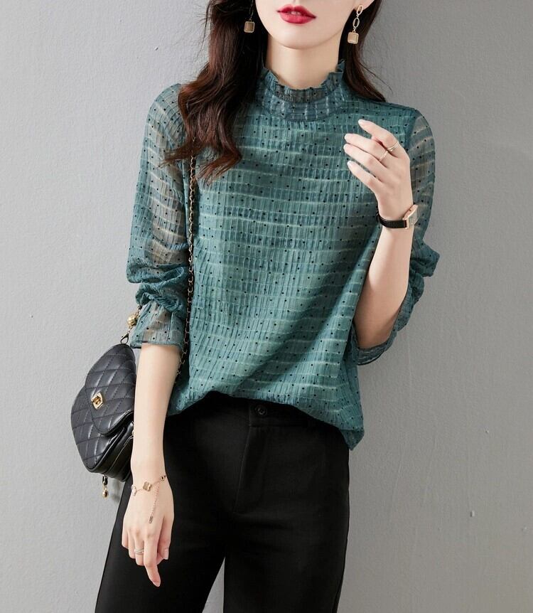 ブラウス トップス 透け感 上品 おしゃれ チュニック 袖あり 長袖 襟付き スタンドカラー シースルー 薄手 かわいい 可愛い きれいめ シンプル 大人 お洒落 かっこいい レトロ 大人可愛い 大人女子 こなれ感 ラブリー キュート ガーリー セクシー エレガント フリル 春 夏 秋 冬 オールシーズン 10代 20代 30代 40代 レディース 女性用 ママ オフィス ビジネス OL 通勤 学生 デート お出かけ 休日 レストラン お呼ばれ 普段使い トレンド 流行 S M L XL 緑 グリーン