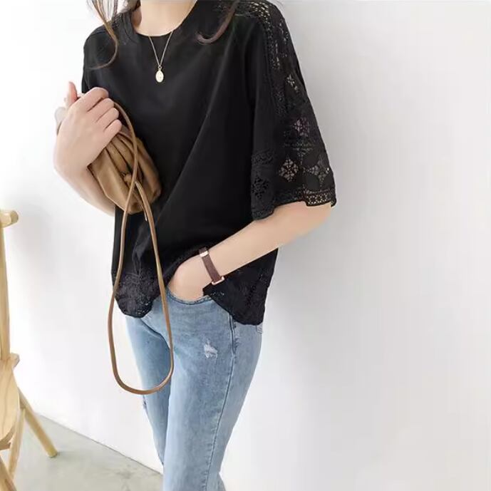 トップス プルオーバー 袖あり 5分袖 五分袖 フレアスリーブ ラウンドネック 襟なし レース 透け感 綿 薄手 大人可愛い きれいめ シンプル 大人 上品 おしゃれ お洒落 かっこいい 大人可愛い 大人女子 セクシー 無地 春 夏 20代 30代 40代 レディース 女性用 ママ OL 通勤 デート お出かけ 公園デビュー 女子会 休日 リゾート 旅行 高原 ガーデン 着回し 普段使い ファッション コーデ 楽ちん サイズ XL XXL ゆったり ゆる ワイド 色展開 白 ホワイト 黒 ブラック