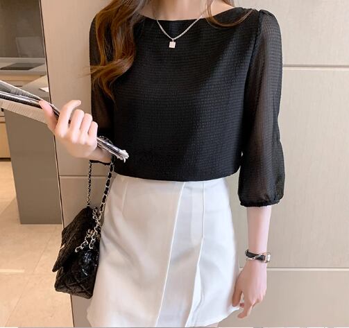 トップス シャツ ブラウス プルオーバー 七分袖 ボートネック かわいい 大人可愛い 上品 お洒落 大人女子 キュート 柄 格子柄 春 夏 秋 10代 20代 30代 40代 50代 女性用 ママ オフィス OL 学生 通学 お出かけ 女子会 休日 旅行 ホテル レストラン ショッピング 韓国系 S M L XL 2XL ブラック イエロー