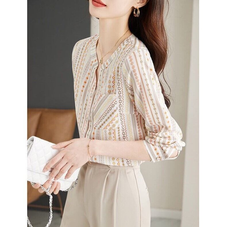 トップス シャツ 柄シャツ ベーシック オフィス オフィスカジュアル 胸ポケット 袖あり 長袖 襟なし タイト 薄手 かわいい 可愛い きれいめ 個性的 大人 上品 おしゃれ お洒落 かっこいい レトロ 大人可愛い 大人女子 こなれ感 キュート ラブリー エレガント 柔らか ボタン 清楚 美人 春 夏 秋 10代 20代 30代 40代 50代 60代 レディース 女性用 ビジネス OL 通勤 学生 通学 ホテル レストラン お呼ばれ 着回し 普段使い 定番 S M L XL 2XL ピンク系 オレンジ系