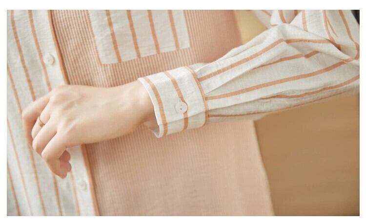 トップス シャツ 柄シャツ ベーシック オフィス オフィスカジュアル 胸ポケット 袖あり 長袖 襟あり タイト 薄手 かわいい 可愛い きれいめ 個性的 大人 上品 おしゃれ お洒落 かっこいい レトロ 大人可愛い 大人女子 こなれ感 ラフ カジュアル シンプル 柔らか ボタン ストライプ 美人 春 夏 秋 10代 20代 30代 40代 50代 60代 レディース 女性用 ビジネス OL 通勤 学生 通学 休日 トレンド 流行 着回し 普段使い 定番 S M L XL 2XL オレンジ 縞 シマ