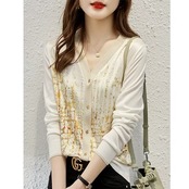 トップス カーディガン 柄 羽織 オフィス オフィスカジュアル 高級感 袖あり 長袖 Vネック 襟なし ニット タイト 薄手 かわいい 可愛い きれいめ 個性的 大人 上品 おしゃれ お洒落 細見え 着やせ 大人可愛い 大人女子 こなれ感 エレガント キュート ガーリー 清楚 スマート 美人 春 夏 秋 10代 20代 30代 40代 50代 ルーズフィット レディース 女性用 ビジネス OL 通勤 学生 通学 休日 クール かっこいい 着回し 普段使い 定番 M L XL 2XL ホワイト ブルー