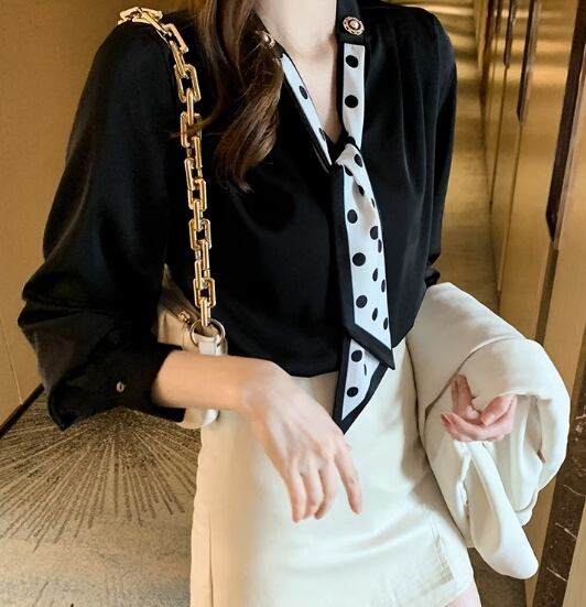 トップス シャツ ブラウス ドット ドットスカーフ スカーフ 袖あり 長袖 Vネック 大人可愛い きれいめ シンプル 大人 上品 おしゃれ お洒落 大人可愛い 大人女子 こなれ感 ラフ ラブリー キュート ガーリー ルーズ 個性的 クール セクシー エレガント モダン 主役級 存在感 フォーマル 抜け感 無地 春 夏 秋 冬 オールシーズン シーズンレス 入学式 卒業式 バレンタイン 10代 20代 30代 レディース オフィス ビジネス OL 通勤 学生 通学 デート お出かけ 女子会 休日 パーティー