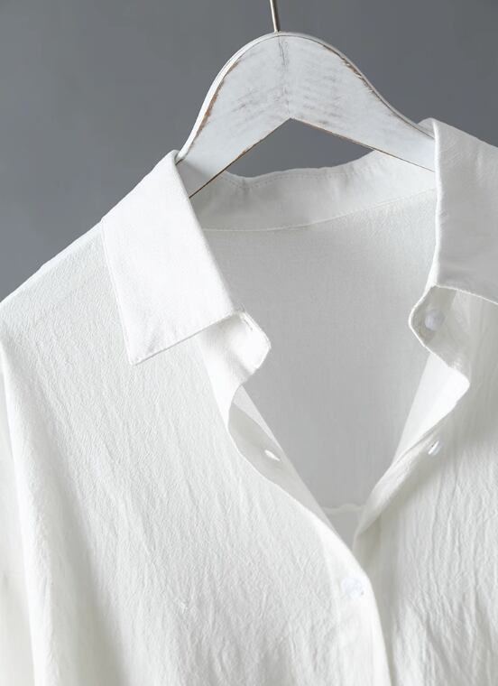 トップス シャツ ミドル丈 袖あり 長袖 Vネック 襟付き 角襟 ストレート 綿 リネン 大人可愛い シンプル カジュアル 大人 上品 おしゃれ お洒落 大人可愛い 大人女子 こなれ感 ラフ ルーズ とろみ感 抜け感 無地 春 秋 10代 20代 30代 40代 50代 60代 レディース 女性用 ママ マタニティ オフィス ビジネス OL 通勤 学生 通学 お出かけ 普段使い 韓国系 オルチャン ファッション コーデ スタイル 楽ちん 体系カバー サイズ M L ホワイト ブルー ベージュ