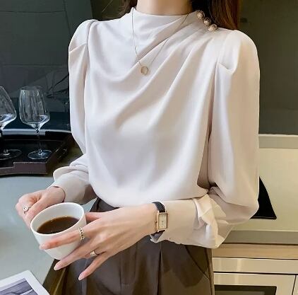 シンプルで合わせやすいのに、顔周りや背中が華やかに見えるシフォンブラウス。