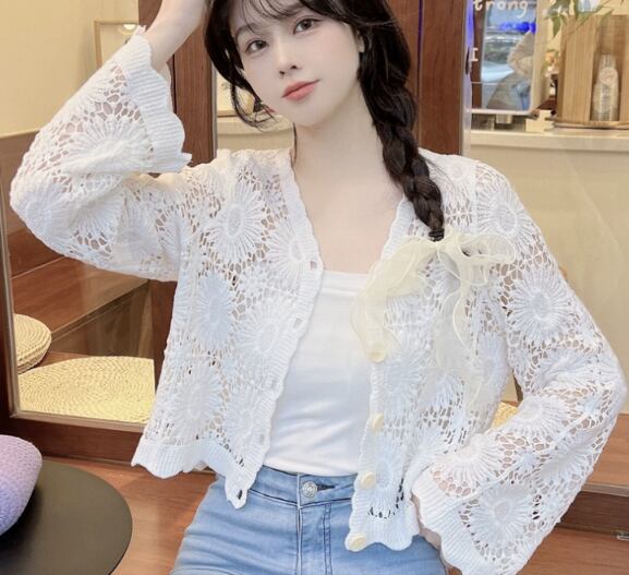 トップス カーディガン ミニ ミニ丈 ショート ショート丈 袖あり 長袖 Vネック フリル 透かし編み サマーニット かわいい 大人可愛い きれいめ シンプル 上品 おしゃれ お洒落 ラブリー キュート ガーリー エレガント 抜け感 無地 花柄 春 夏 10代 20代 30代 レディース 女性用 女の子 デート お出かけ 公園 女子会 休日 イベント リゾート 旅行 海 高原 ガーデン レストラン 着回し 普段使い 重ね着 モテ S M L ゆったり 白 ホワイト アプリコット
