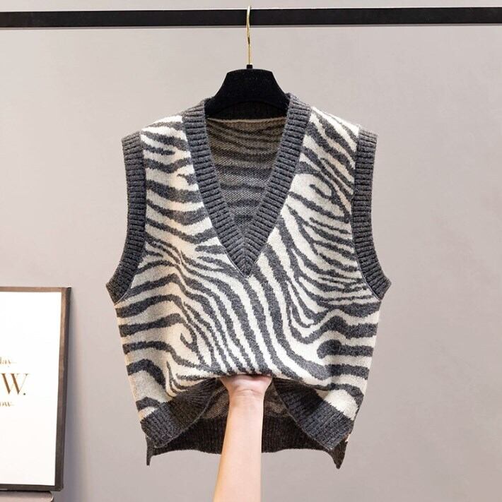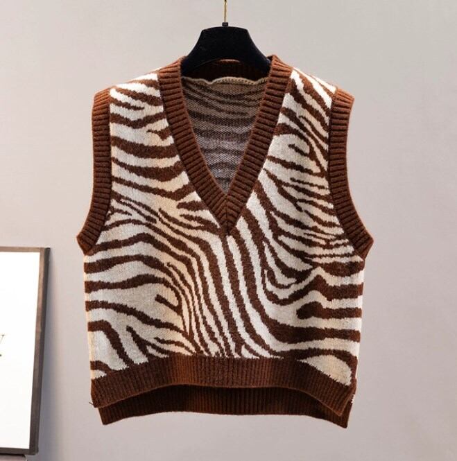 トップス ベスト ジレ プルオーバー 袖なし 襟なし Vネック ニット かわいい 大人可愛い きれいめ シンプル 大人 上品 おしゃれ かっこいい 大人女子 レトロ こなれ感 ラフ クール モダン 個性的 主役級 存在感 ゼブラ柄 秋 冬 10代 20代 30代 レディース 女性用 OL 通勤 ママ 学生 通学 デート お出かけ 女子会 お泊まり 休日 リゾート 旅行 ホテル ショッピング レストラン イベント アウトドア 着回し 普段使い 重ね着 S M L XL ファッション コーデ スタイル モテ