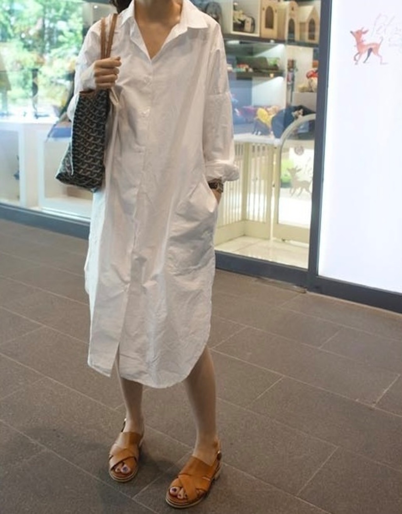ワンピース シャツワンピース ミドル丈 袖あり 長袖 襟付き ルーズ ポロカラー ストレート ポケット 前開き 薄手 大人可愛い きれいめ シンプル カジュアル 大人 上品 お洒落 かっこいい レトロ 大人女子 こなれ感 ラフ エレガント モダン 主役級 存在感 とろみ感 抜け感 無地 春 秋 20代 30代 40代 レディース デート お出かけ 女子会 お泊まり 休日 ショッピング 普段使い 韓国 韓国系 オルチャン ファッション コーデ スタイル モテ トレンド 流行 S M L XL 白 ホワイト