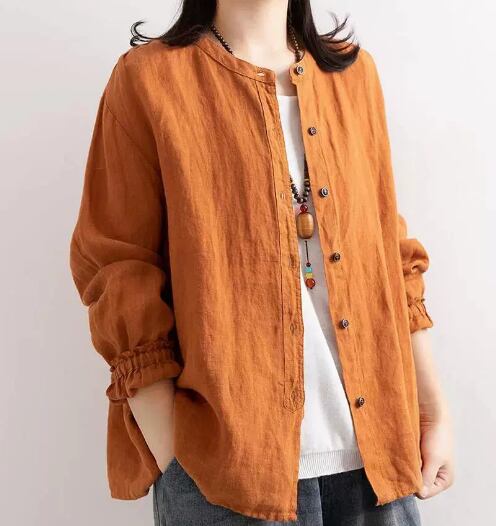 カジュアルコーデが好きな方にぴったりの落ち着いた色味が魅力的なラウンドネックシャツ。袖口のくしゅっとしたデザインがポイントです。ボタンをすべて閉めてプルオーバー風に着こなしてもおしゃれですし、ボタンを開けてお気に入りのTシャツにさらっと羽織っても◎プリーツスカートやチュールスカートを合わせてガーリーに決めても可愛いです。
