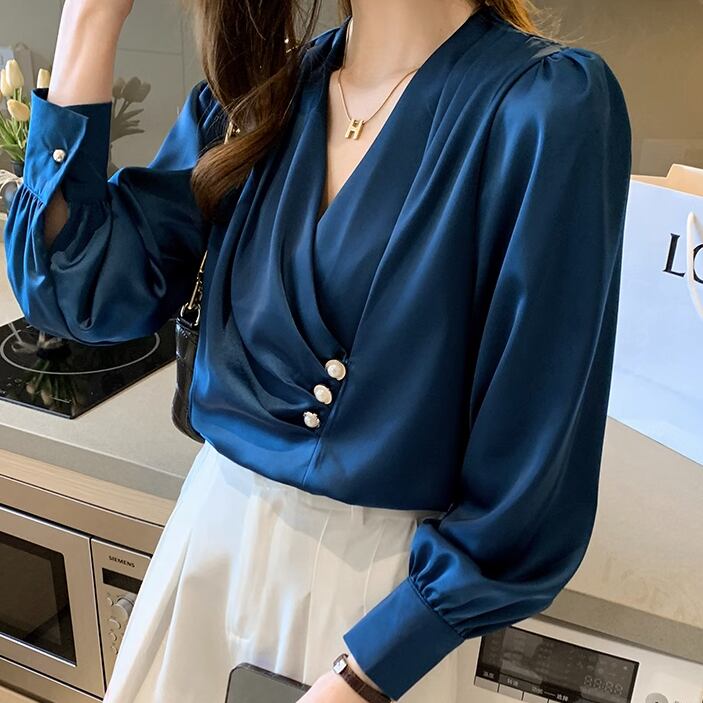 トップス ブラウス プリーツシャツ プルオーバー 袖あり 長袖 Vネック 襟なし プリーツ ボタンあり きれいめ 大人 上品 おしゃれ お洒落 レトロ 大人女子 クール セクシー エレガント シック フォーマル 無地 春 秋 二次会 20代 30代 40代 レディース 女性用 デート お出かけ 休日 パーティー イベント 高原 ホテル ガーデン レストラン 着回し 普段使い ファッション コーデ スタイル プレゼント ギフト サイズ S M L XL 2XL 色展開 白 ホワイト 青 ブルー ワインレッド