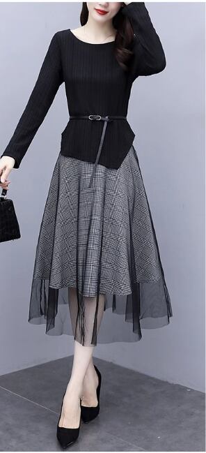トップス スカート セットアップ カットソー チュールスカート 膝下 ミモレ丈 長袖 フレア アシンメトリー チュール ベルト ウエストマーク 大人可愛い お洒落 大人女子 クール モード系 チェック柄 春 秋 冬 10代 20代 30代 40代 女性用 ママ OL 通勤 学生 お出かけ 女子会 休日 パーティー イベント ホテル ガーデン レストラン ショッピング 韓国系 コーデ L XL 2XL 3XL 4XL 5XL