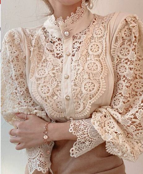 レディース トップス シャツ ブラウス 7分袖 ボリューム袖 ハイネック レース フリル 透かし編み かわいい 大人可愛い きれいめ 上品 おしゃれ ガーリー ルーズ エレガント 主役級 存在感 ラブリー キュート 花柄 フラワー 春 秋 10代 20代 学生 デート お出かけ イベント 旅行 海 レストラン 女子会 休日 高原 ガーデン ショッピング コンサート ライブ お花見 合コン カフェ 婚活 モテ S M L 白 ホワイト 黒 ブラック アプリコット